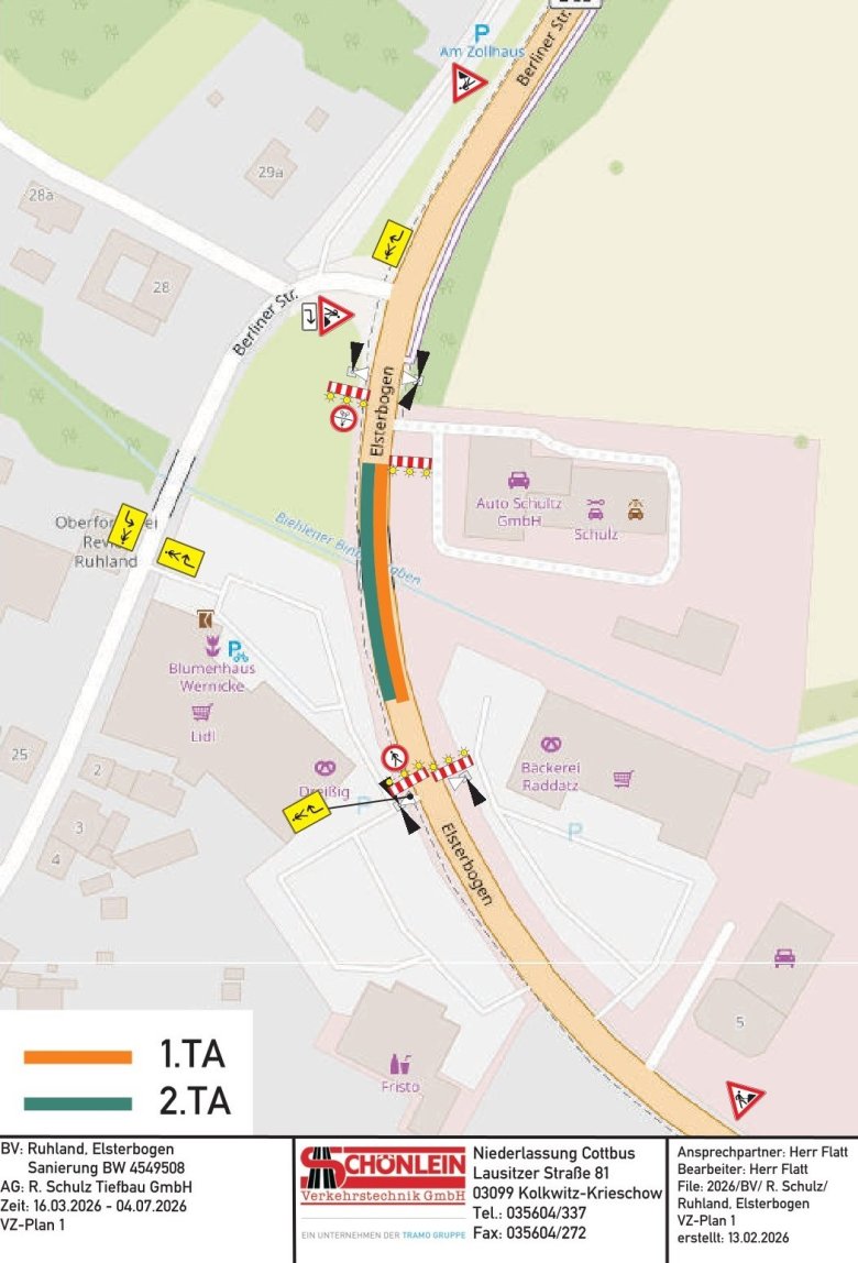 Der Landesbetrieb Straßenwesen beginnt am Montag, den 23. März 2026, mit der Sanierung der Brücke über den Binnengraben in Ruhland im Zuge der Landesstraße L 55 (Oberspreewald-Lausitz).