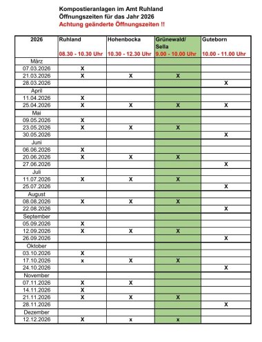 Änderungen der Annahme auf den Kompostieranlagen im Amt Ruhland