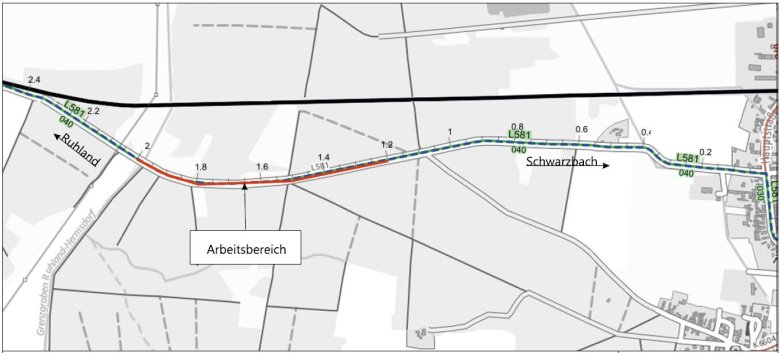 Vom 01.12.2025 bis 03.12.2025 führt die Firma Frischke Landschaftspflege GmbH im Auftrag des Landkreises Oberspreewald-Lausitz auf der L 581 Baumschnittarbeiten im Waldrandbereich unter halbseitiger Straßensperrung aus.