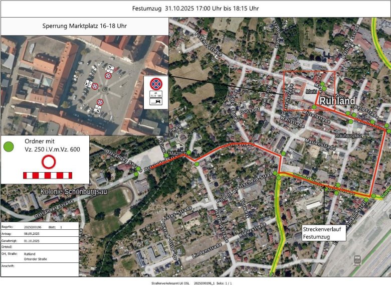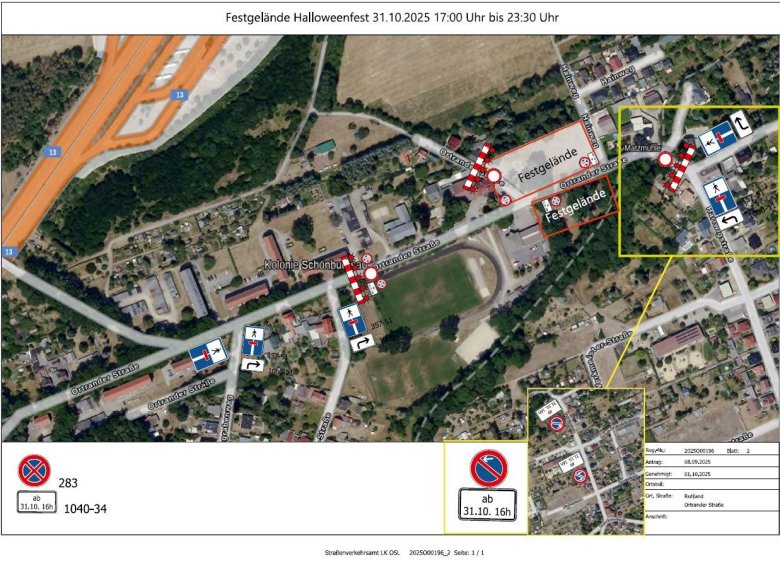 Zur Sicherstellung eines reibungslosen Veranstaltungsablaufs wird die Ortrander Straße im Zeitraum von 17:00 Uhr bis 23:30 Uhr für den Fahrzeugverkehr gesperrt. Einsatz- und Rettungsfahrzeuge sind von dieser Regelung ausgenommen.